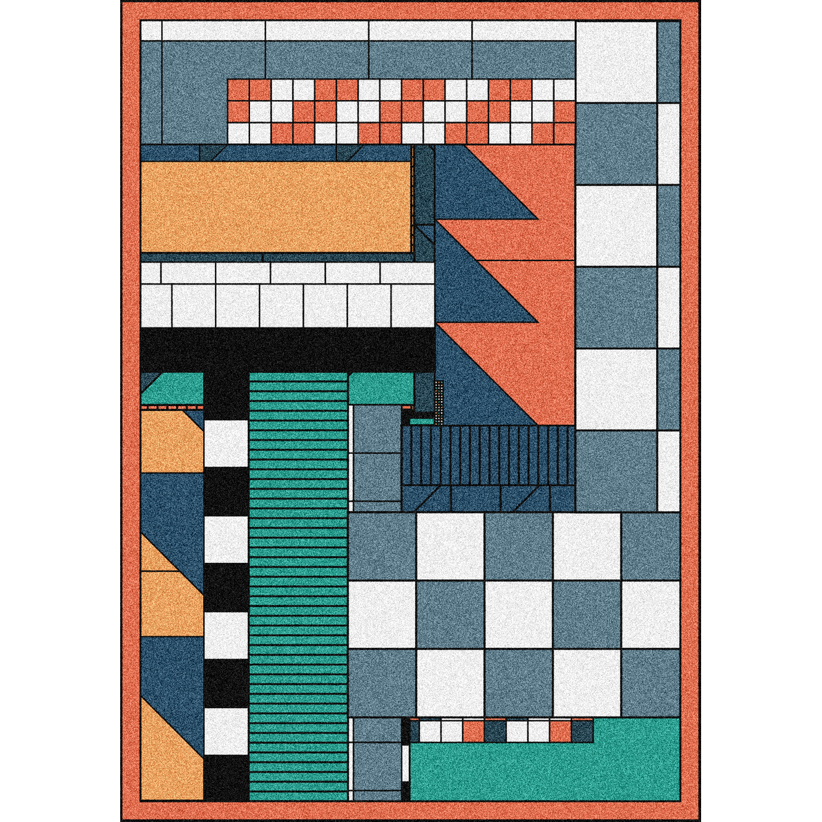 The first level is the golden composition with rectangles and the other levels are defragmented and increase in complexity, allowing more variety in the collection.